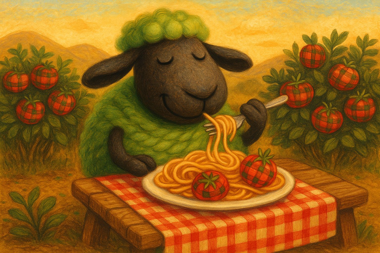 Trotz all der Missgeschicke und Tomatenflecken war McWolly eines immer geblieben: ein glückliches Schaf mit dem Herz am rechten Fleck, dem Geschmack für feines Essen – und einer Wolle, so legendär, dass Spinnerinnen aus ganz Europa von ihm träumten.
